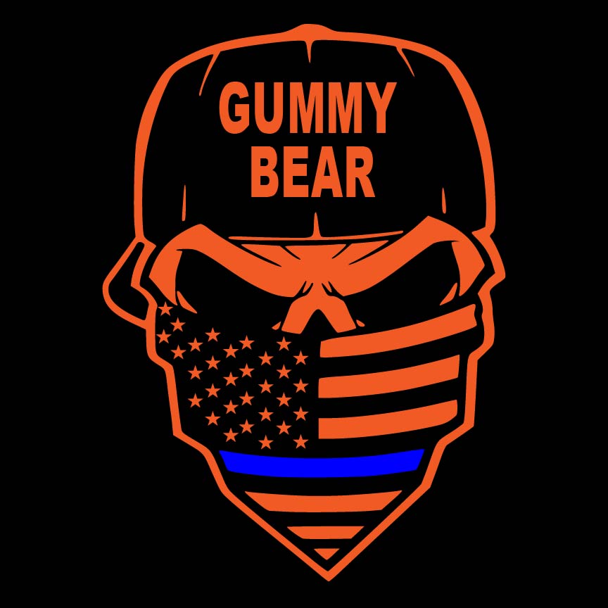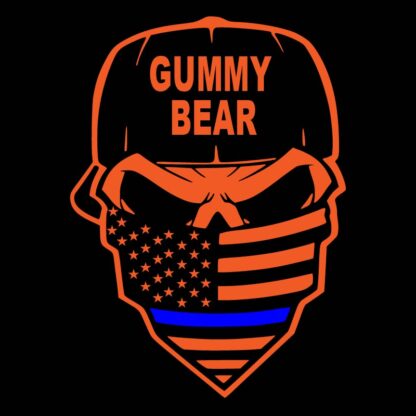 Back The Blue. Black shirt with orange outlined skull and road name vinyl.